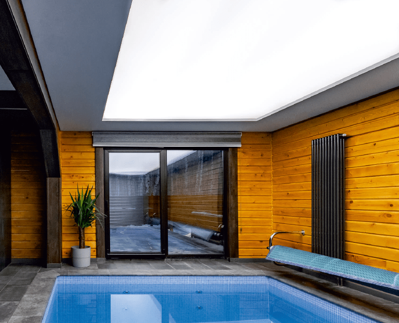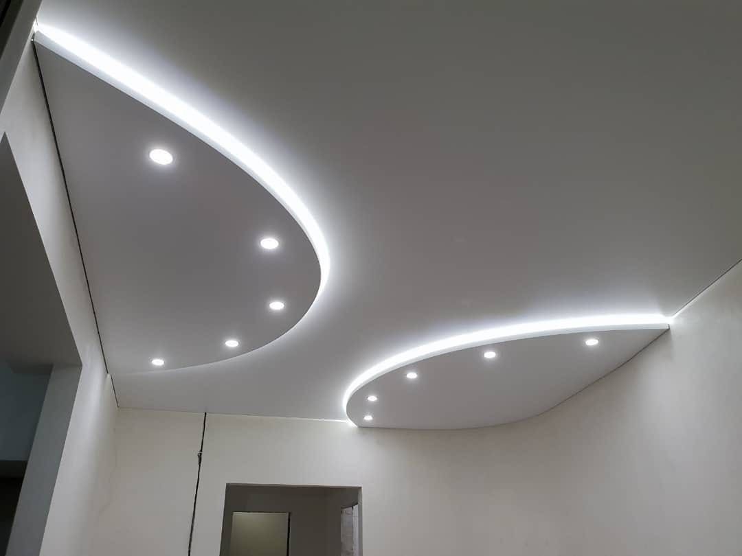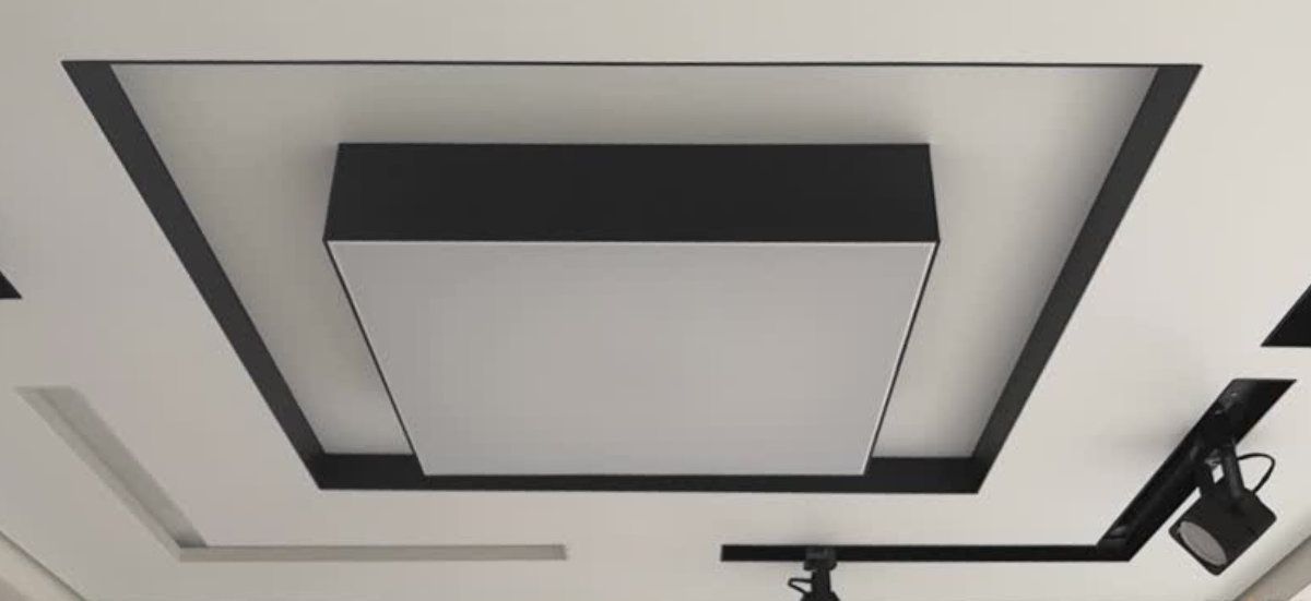 При такой комбинации верхний уровень потолка будет иметь теневое примыкание, как и нижний. Профиль Slott 80 изготавливается в черном и белом цветах.