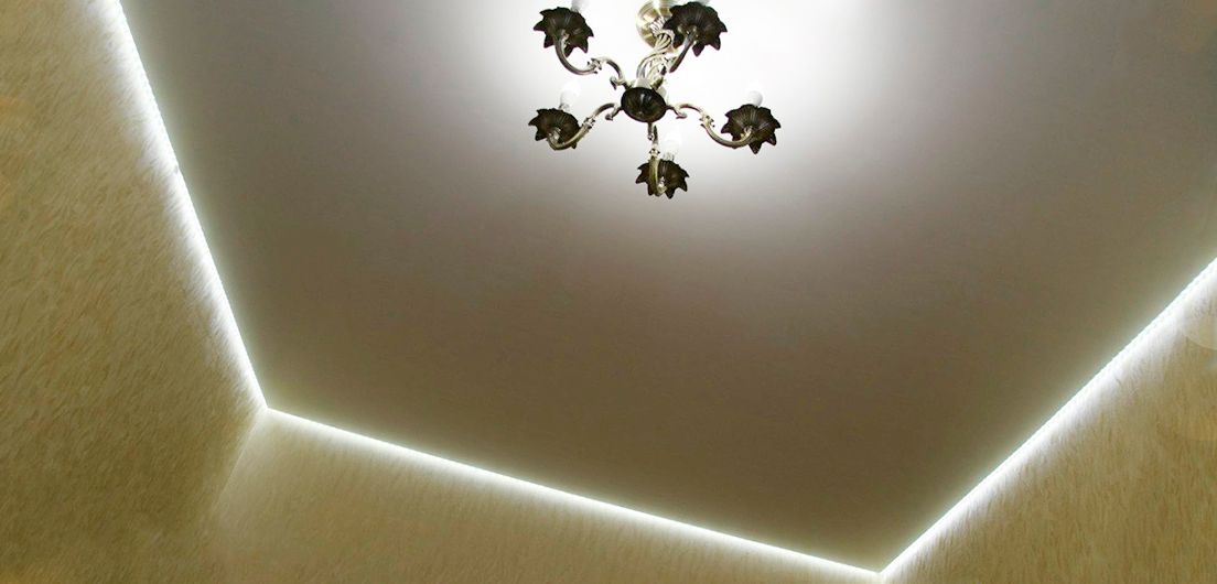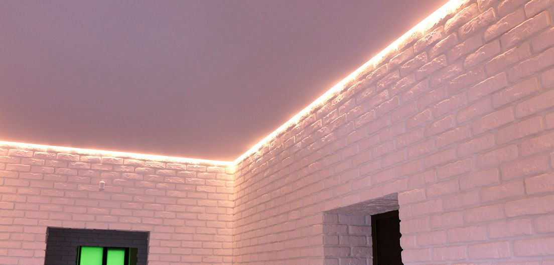Поролон устанавливается для предотвращения попадания насекомых в подпотолочной пространство. Конструкция крепится к потолку и предусматривает возможность использования подсветки по периметру потолка. Подсветка устанавливается в паз профиля и закрывается специальным светопрозрачным рассеивателем.